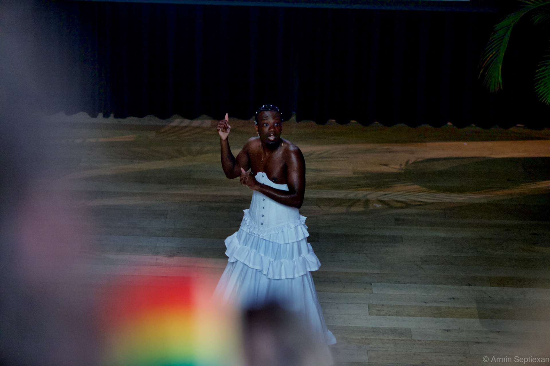 ✊🏾✨🏳️🌈NA RAÍS.🏳️🌈✨🇨🇼 It was an honor to be part of OPEN Delft’s Queer Night during the Keti Koti / Dia di Abolishon commemoration and festivities. For this event, I created a solo performance sharing my journey as a young queer artist from Curaçao. I wanted to be bold, honest, and vulnerable.Curaçao is a beautiful, warm island. But growing up, it wasn’t always warm to queer people, especially not to queer kids. While things are changing, there’s still a long way to go. Our queer community continues to rise, standing firmly against homophobia, bullying, and the religious narratives that have long been used to strip us of our basic rights. My hair symbolized direction, resilience, and a map to freedom just as our ancestors once made and followed. The pearls and diamonds represented uniqueness and richness. The glitter and glow on my body honored the strength and power of my dark, melanin rich skin, that as a queer person, has had to endure so extra opinions, abuse, judgments, taboos, and more. Thanks to the gifted hands of Annysha Clarinda for putting it together. I danced my worries and pains away on the beautiful and innovative Caribbean-jazz rhythm infused with the resilient and revolutionary music of tambú by the multicultural treasure of the Caribbean that is Siegfried Hart. I wore a Curaçaon cultural Seú skirt with a white corset to hold it all together. Cleavage on display, unapologetically. Because my skin deserves to shine, to be seen, and to be celebrated. This look wouldn’t have been possible without the multifaceted artist and human that is Nashita Scoop. I’m grateful for the care from the entire Delftspeil production team. Thanks to Raydaniël Petroudis for providing me with fragments of the documentary All Inclusive Curaçao now available on NPO Start. And a huge thanks to the one and only, my good friend, Mushroommosis Thank you for speaking my name at tables I never imagined sitting at. I see you, dear. Photos by: @armin_septiexan @esther_de_cuijper_photography @delftopzondag Flamboyant tree visuals by Kinshasa.